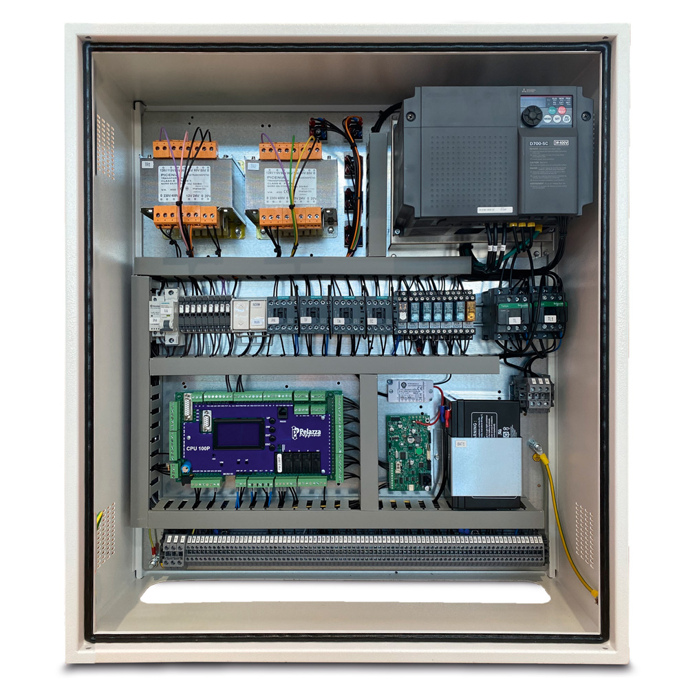 Quadro a microprocessore con variatore di frequenza ideale per modernizzazioni. Adatto per l’installazione su tutti gli impianti con porte manuali/automatiche/semiautomatiche, fino a 4,5 Kw. 12 fermate. Facilmente configurabile per l’adattamento alle reali caratteristiche dell’ascensore.